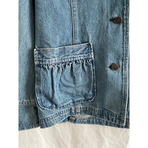 VTG JJill Out of the Blue Denim Jacket Button Down Front Waist Pockets Ruffle S