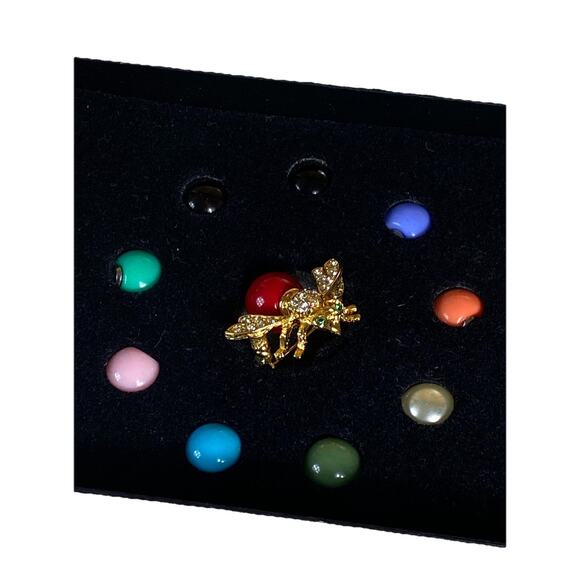 VTG JOAN RIVERS CLASSICS BABY BEE BROOCH/PIN SET/10 INTERCHANGABLE BEADS! J55999