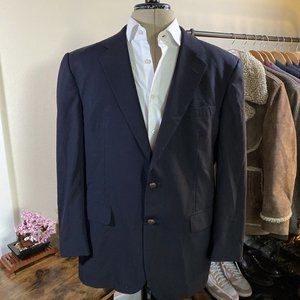 VTG JOS A BANK 100% WOOL Metal Buttons Suit Jacket Blazer Mens 42R Navy Preppy