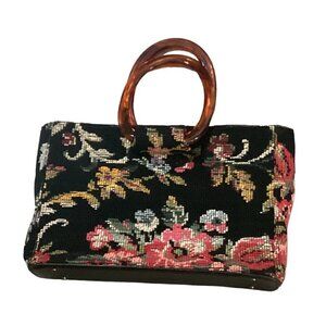 Description: Vintage 50s 60s Floral Tapestry/Needlepoint Handbag Purse Tote