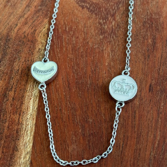 VTG JUICY COUTURE ENAMEL CROWN HEART CHERRY BOW BIRD SILVER TONE LONG NECKLACE