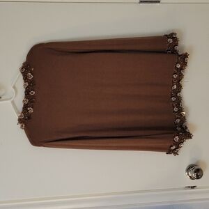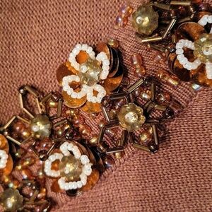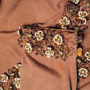 VTG JUST B Brown Floral Glass Beaded Coquette Cardigan Sweater XL