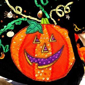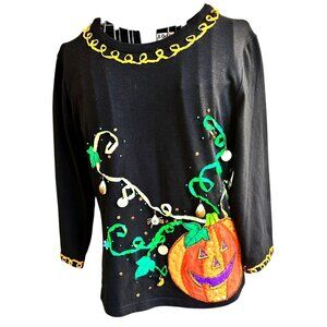 VTG Jack B Quick Jack O Lantern Top Small Halloween Black Embellished Applique