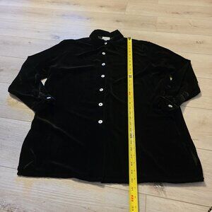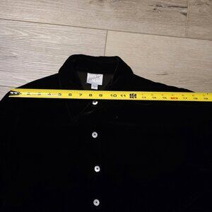VTG Jacqueline Ferrar Black Velvet Velour Long Sleeve Collar Button Shirt Sz Med
