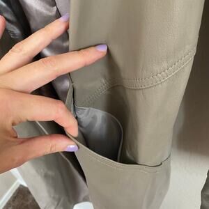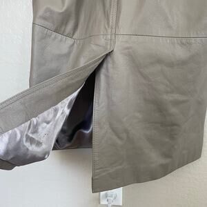 VTG Jacqueline Ferrar Leather Trench Coat Womens Size Large Taupe Longline