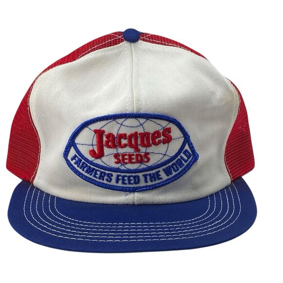 VTG Jacques Seeds Red White & Blue Hat Snapback Cap USA K-Brand Trucker (H6)