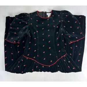 VTG Jan Briggs Size Small Medium Embroidered Roses Black Velvet Dress Retro 90s