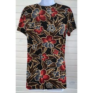 VTG Janana’s Sz ?? (See Meas) Red Khaki Floral Slinky Pullover Tunic Stretch EUC