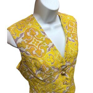 VTG Jane Andre “M” Yellow Art To Wear Vest Abstract Jacquard Cottagecore READ