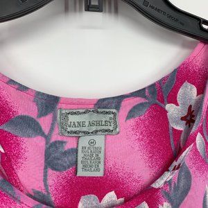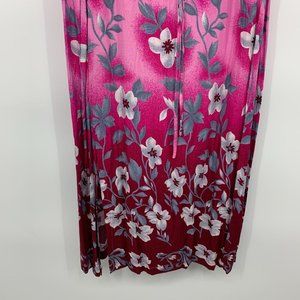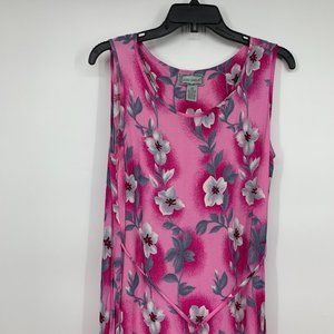 Vintage Jane Ashley Dress Womens Medium Pink Gray Floral Print Maxi Sleeveless Tie Waist Hawaiian. Great pre-owned condition, small dot mark at back shoulder (see photo). Slits at bottom.