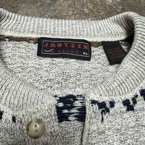 VTG Jantzen Pullover Sweater 100% Cotton Beige XL Fair Isle Fisherman Grandpa