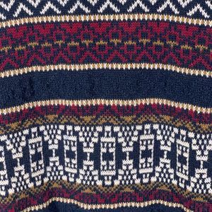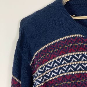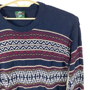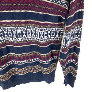 VTG vintage Jantzen Mens L Sweater Knit Geometric Striped Crewneck Blue Red Grandpa Crewneck hipster ugly pullover chunky knit 90s 80s aztec southwest old school