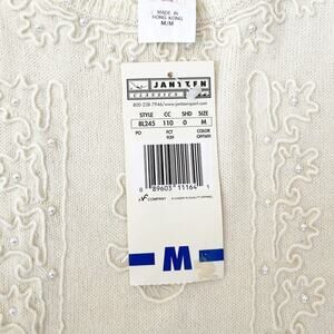 VTG Jantzen Sweater Womens Cream Grandma 80's Hand Embroidered Pearl Deadstock