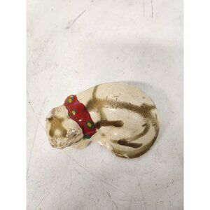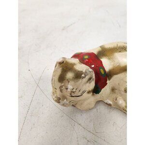 Vintage Japan Gilt Small Kutani Cat Figurine Porcelain Sleeping Kitty Hand Painted