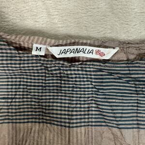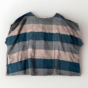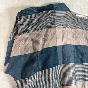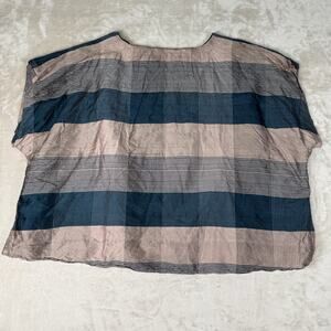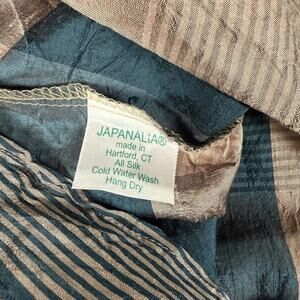 VTG Japanalia Women's Size M Blouse Top Oversized Silk Plaid Blue Beige USA Made
