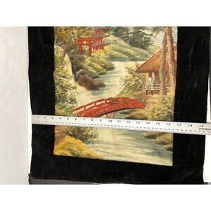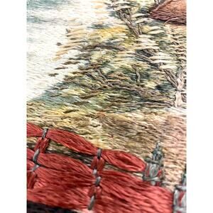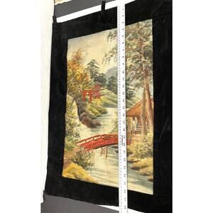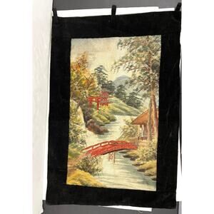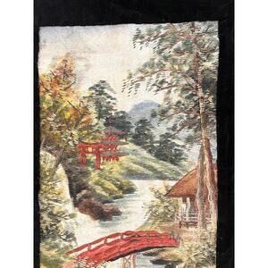 VTG Japanese Silk Embroidery Wall Hanging Tapestry Handmade Village River 19"x28