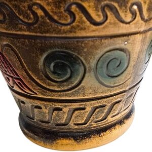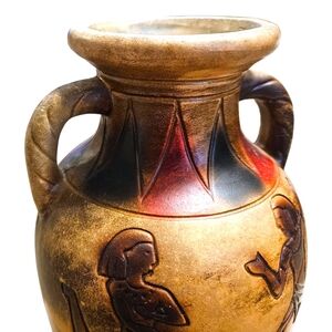 Greek vase Japan, vintage terracotta, Grecian urn, classical pottery, lion motif, embossed decor, mythological figure vase, mid-century ceramic, collectible home decor, Japanese export vase