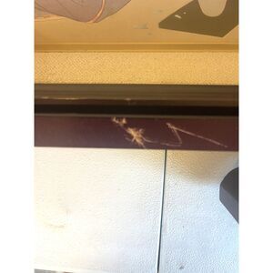 Original wood frame with matching display feet screwed into the bottom of the frame. These can be removed. There is a scratch on the wood on the bottom of the display piece, not the actual frame itself.