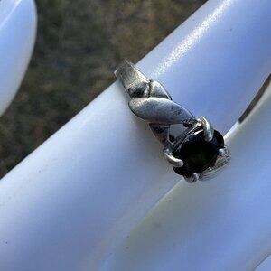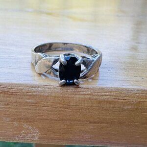 This vintage early hand made ring by Jay King is stamped sterling silver ring features a beautiful natural black spinel with internal metallic shiller and translucency in an oval shape estimated to be about 0.5-0.6 carat range with a total weight of 2.7 grams. The ring is also stamped with maker's mark as DTR Desert Rose Trading and is a size 7. The metal is 925 purity and the style is a band, with a single gemstone. The ring is fine jewelry, perfect for any occasion. The vintage style adds a touch of nostalgia to your collection. This vintage women's size 7 Jay King sterling and black spinel accent ring is in good pre owned clean condition with use wear on the precious metal, prong set stone is in good shape. Please review pictures for details and size measurement information, thank you.