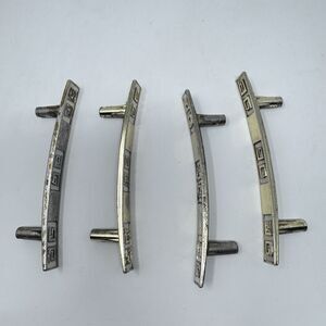 I have 46 PAIRS of salvaged, vintage drawer handles. Each is 4". They are all in well used, vintage condition. The metal has discoloration, patina and pitting. The white areas are chipped on some. I have hand washed them all to get the top layer of grime off, but they could be deep cleaned if you wish to do so. There is no additional hardware.