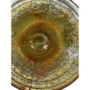 Vintage Jeanette marigold carnival glass crackle apothecary candy jar. Decorative and collectible piece, perfect for displaying candy, trinkets, or as a centerpiece.