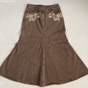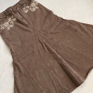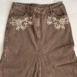 {VTG} Jeanology Collection | Cotton Denim Jean Panel Embroidered Maxi Skirt (10)