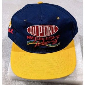 Vintage 1990s Jeff Gordon DuPont Refinish Racing snapback cap. Embroidered logos. Made in the USA by AJD (The Professional Baseball Cap). Excellent pre-owned condition for its age - very little color fade or wear.