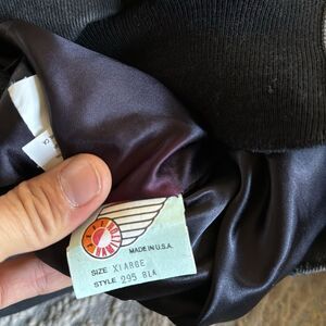 VTG Jeff Hamilton Blackhawks bomber jacket red leather striped sleeves size XL