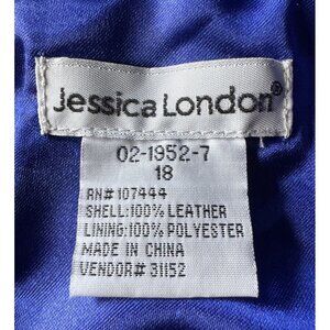 VTG Jessica London Women's Sz 18 Blue Suede Leather Blazer Button Jacket