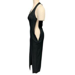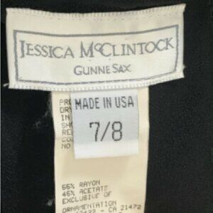 Make a stunning entrance at your next formal event in this vintage Jessica McClintock Gunne Sax dress. The black rayon acetate material provides a classic and elegant look, while the embroidered roses and lattice back add a touch of sexy and unique style. The V-neckline and racerback/t-back lace straps complete the look, along with a zipper closure for convenience. This long dress is perfect for a party, cocktail event, or formal occasion. The dress length and sleeveless design make it suitable for any season, whether it's winter, summer, fall, or spring. Dry clean only to keep this timeless dress in top condition.