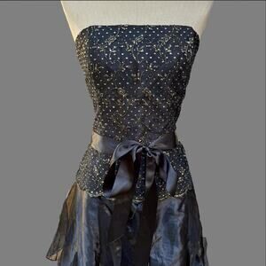 VTG Jessica McClintock Gunne Sax Evening Gown Strapless Black Size 9 Whimisigoth