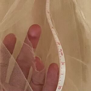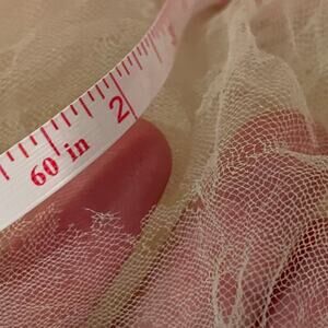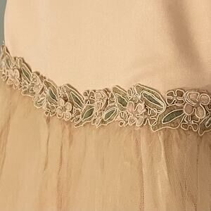 Note: small hole in section of tulle at bottom of dress (see photo) and larger (approx. 3 inch tear) in mid-dress tulle (see photo). these are very difficult to see given the layers of tulle in the dress and the movement of the dress.