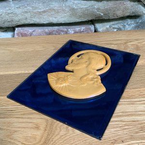 VTG Jesus Blue Mirror Art Deco 20s 30s Plaque Christian Religious Celluloid Art