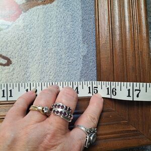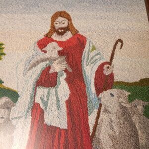This vintage framed cross stitch piece features a depiction of Jesus as "The Shepherd." The handmade embroidery is a tapestry of religious wall decor, perfect for any home or office. The piece is made in the United States and is a unique finished cross stitch piece. This piece is a great addition to any collection of needlecrafts and yarn, and is sure to impress with its intricate details and religious significance.
