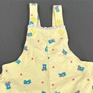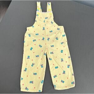 VTG Jet Set Baby Girl Corduroy Overalls 2T Yellow Blue Bears Hearts Ruffle 70s
