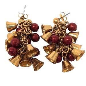 VTG Jewelry Christmas Pierced Earrings Bells Poinsettia Snowflakes Lot of 4 Pairs