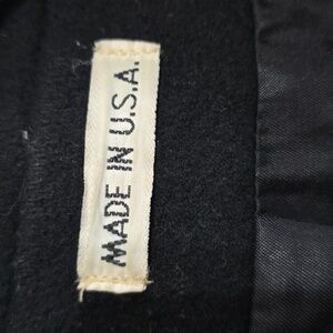 VTG Jill Jr. Womens Black 100% Wool Coat Pockets Pleated Shoulder Sz L? EUC READ. Single button close with another button at neck. Measurements in pics. Made in USA. Pre-owned, very good vintage condition.