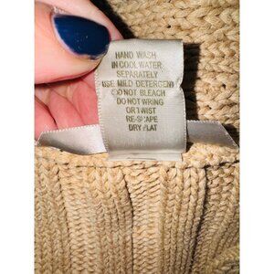 VTG Jillian Nicole Tan Chunky Cable Knit Fisherman Sweater L Cotton Sustainable