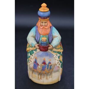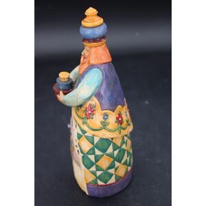 The VTG Jim Shore Let Every Heart Prepare Him Room Three Wisemen Nativity Set 113256 is a beautifully crafted figurine set depicting three wise men from the Nativity scene. Created by artist Jim Shore in 2003, this multicolor piece features a heart-themed design that is perfect for Christmas decor. With its religious themes and intricate details, this collectible item is part of the Let Every Heart Prepare Him Room collection and is a retired piece from the 21st century. Whether displayed in a room or as a standalone figurine, this Three Wisemen Nativity Set brings a touch of seasonal cheer and tradition to any space.