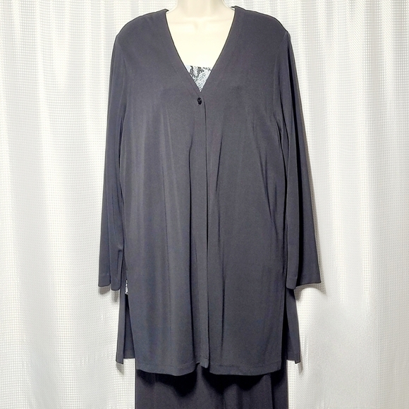 VTG JoSEPHINE CHAUS Black V-neck Long Sleeve Silky Cardigan (XL)