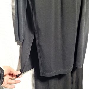 Highlights: V-neckline, one button closure, 9" side slits and long sleeves.