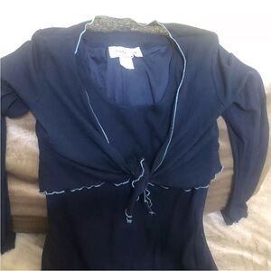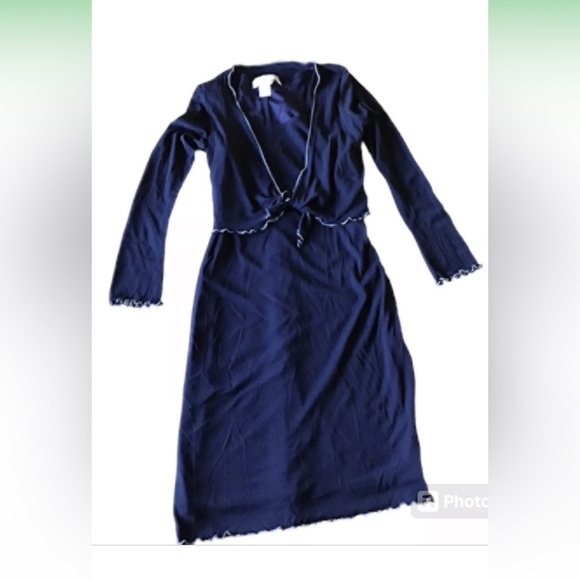 Sleeve approx.22"Length approx.37.5"Jodi California Dress attached sheer jacket Tie Front M Blue Contrast Trim Made In USA