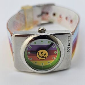 VTG Joe Boxer Women's Watch 24MM Smiley Face Rainbow Plastic Bands New Battery