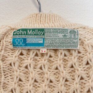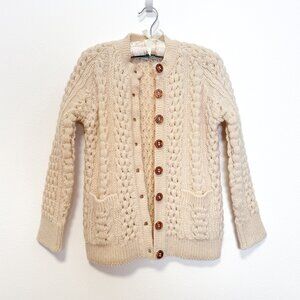 VTG John Molloy Cream Irish Wool Fisherman Knit Cardigan Sweater Size 34 | XS/S