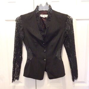 VTG John Murrough Womens Black Knit Leather & Lace Button Up Jacket Size Small. Very good condition. From smoke free home. Very hard to find style!