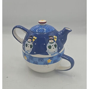 VTG Jolly Follies 1999 The Smores The Merrier Holiday Christmas Teapot & Cup Set. Pre-owned