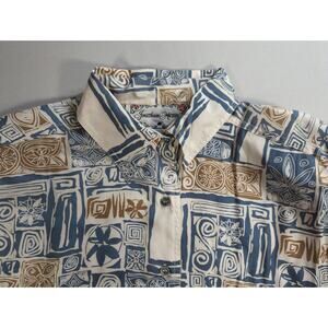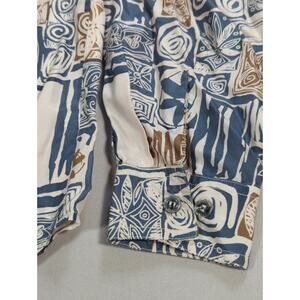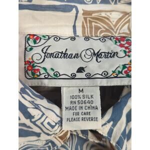 VTG Jonathan Martin Silk Shirt Mens M Blue Tan Abstract Geometric Button Front