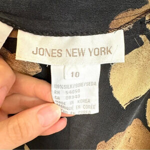 Jones New York 100% Silk Women's 10 Neutral Floral Muted Flowers 90's Y2K Festival Minimalist Classy Whimisgoth