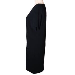 VTG Jones New York Black Beaded Shift Midi Dress Size 14 Short Sleeves Back Zip
