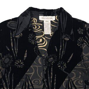 VTG Jones New York Burnout Velvet Blouse Top Sz.S Black Whimsigoth Gothic Witch